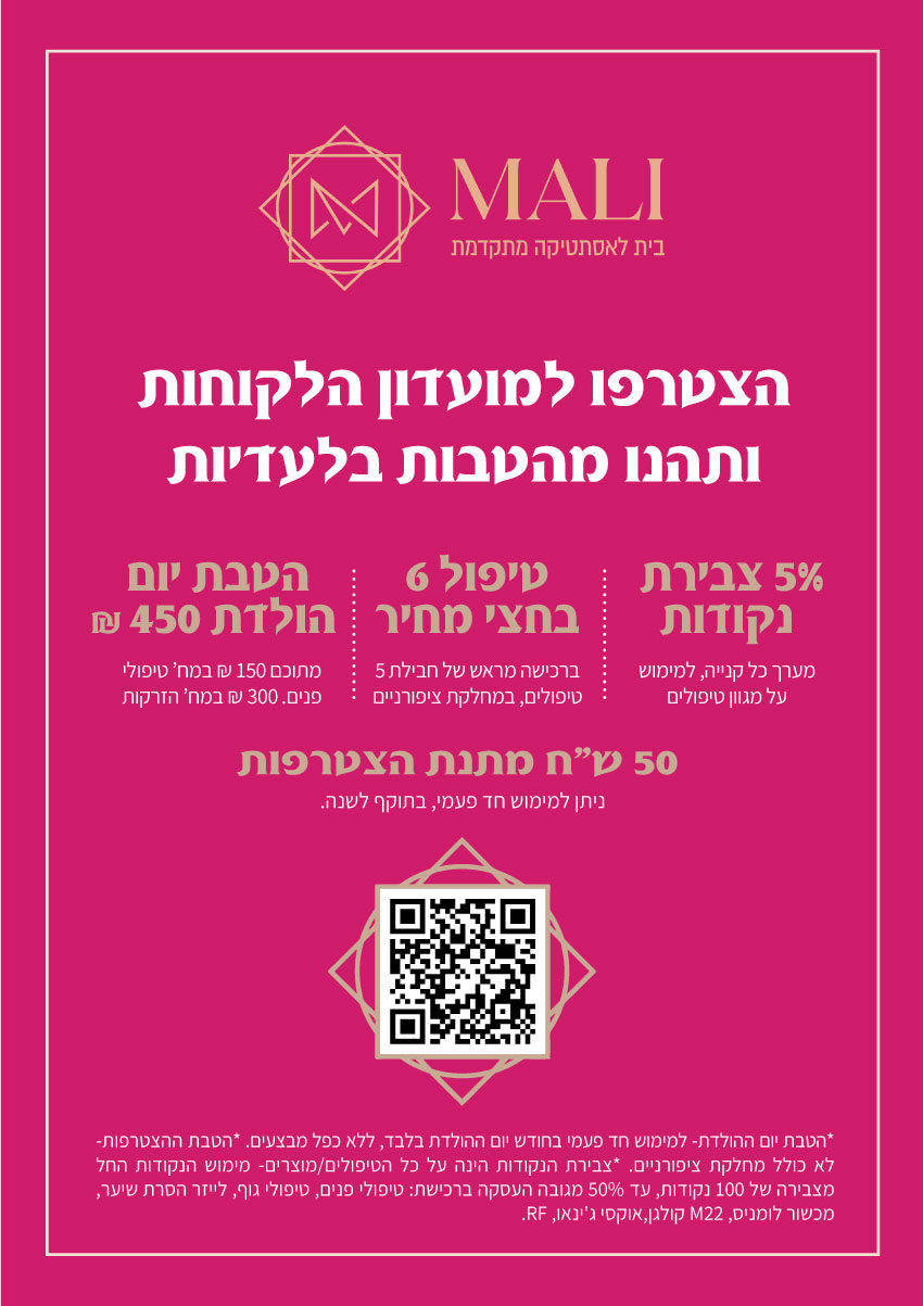 הירשמי לניוזלטר שלנו וקבלי 10% הנחה עבור טיפול פנים מפנק במיוחד!